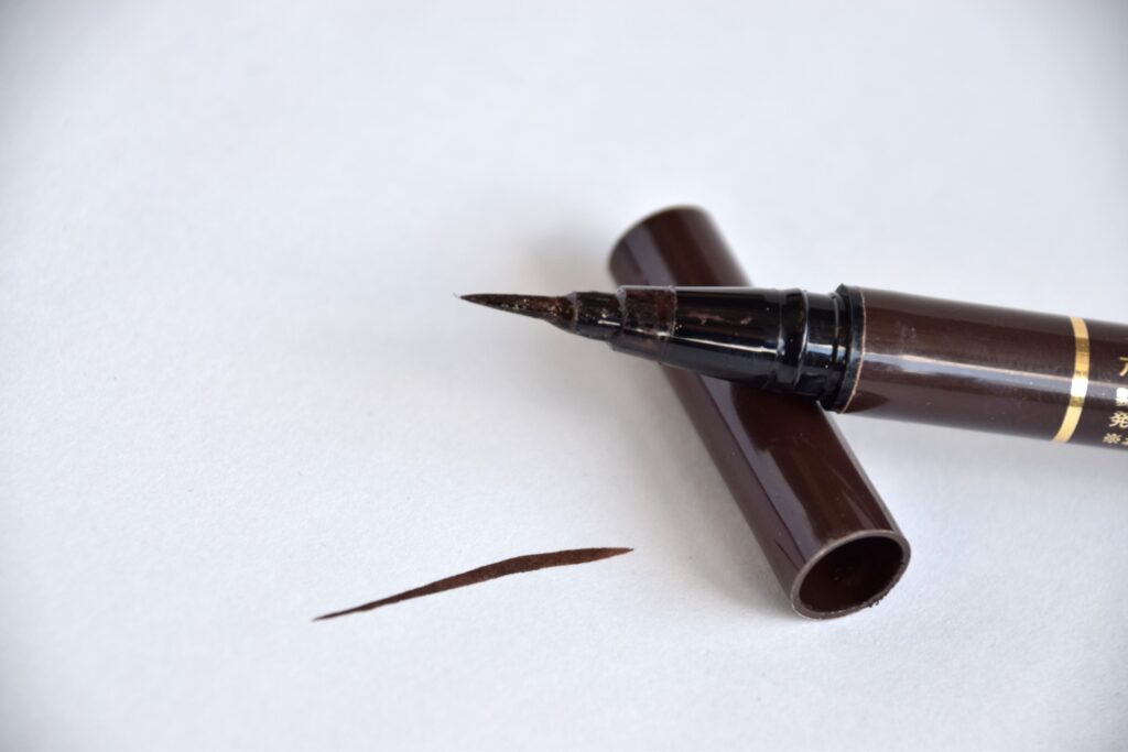 リキッドアイライナーは液状で、筆やフェルトペンタイプの筆先で描くアイテムです。パウダーやペンシルに比べて発色がはっきりしており、細いラインも太いラインも自在に描けるのが魅力です。